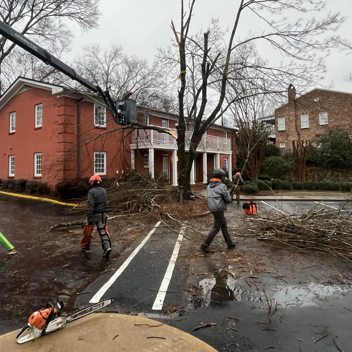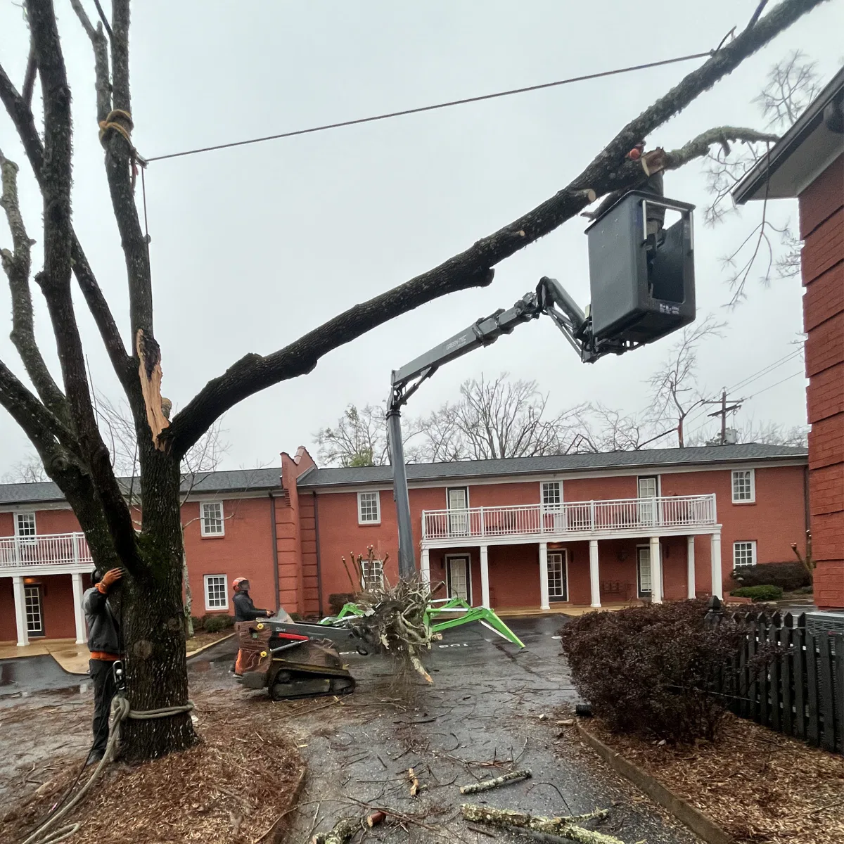 Our crew arrives with the proper equipment and completes the work using controlled cutting methods. Whether it’s removal, trimming, or emergency service, safety and property protection come first.